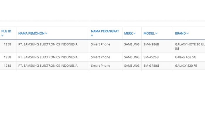 Ketiga Keterampilan Terbaru Samsung Berisi nomor kode SM-N986B, SM-G780G dan SM-A526B. Kode yang sama akan muncul di halaman sertifikat pos Direktorat Jenderal STPBI Kementerian Komunikasi dan Informatika.